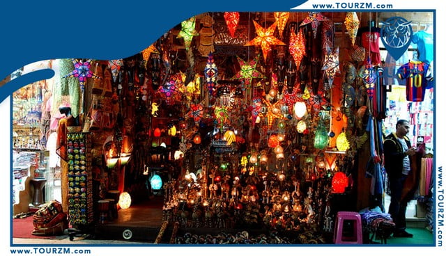 و الباعة المتجولين الذين يعرضون منتجاتهم المتنوعة من السجاد والمجوهرات والتحف الفنية والعطور والتوابل وغيرها.